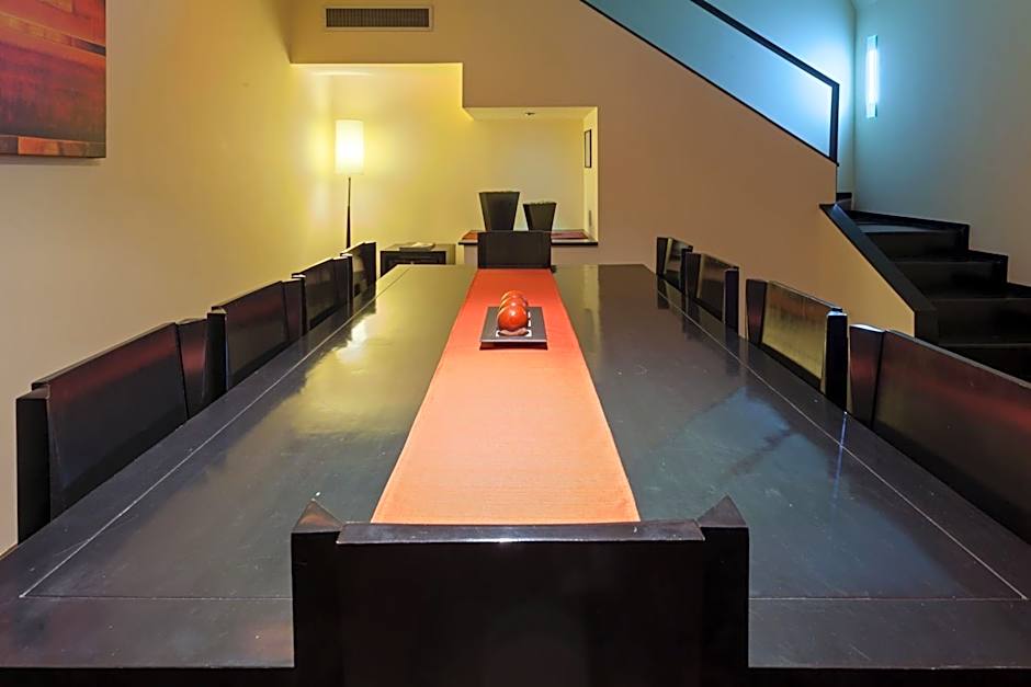 This 2-story suite has a meeting table downstairs and a king-size bedroom on the upper floor. It includes free Wi-Fi, a flat-screen TV and a coffee maker. The private bathroom has a hairdryer.